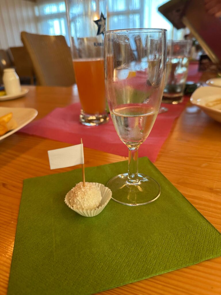 Das gesellige Beisammensein fand wie immer in unserer Clubgaststätte statt. Zur Freude aller Naschkatzen gab es noch eine kleine süße Überraschung in Form der legendären „Raffaello“-Kugel.