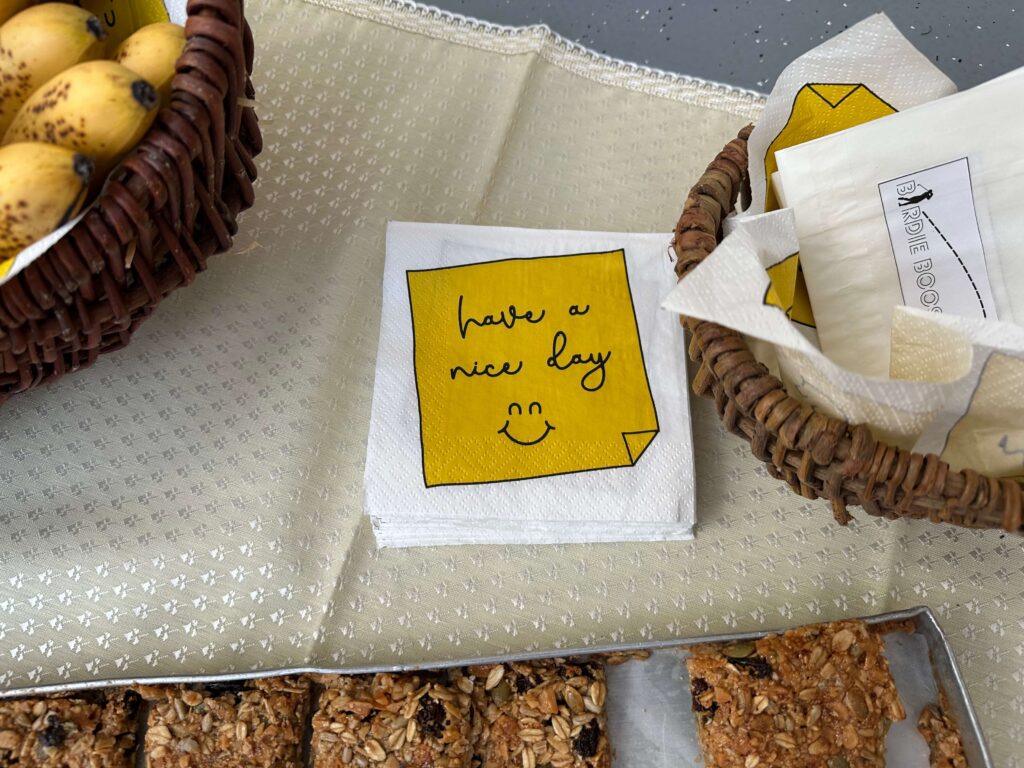 Als Tee-Off Geschenk wartete neben der Scorekarte ein Korb Bananen und leckere Müsliriegel, die man sich in die bereitliegende „Birdie-Booster“-Papiertüte für die Runde einpacken konnte.